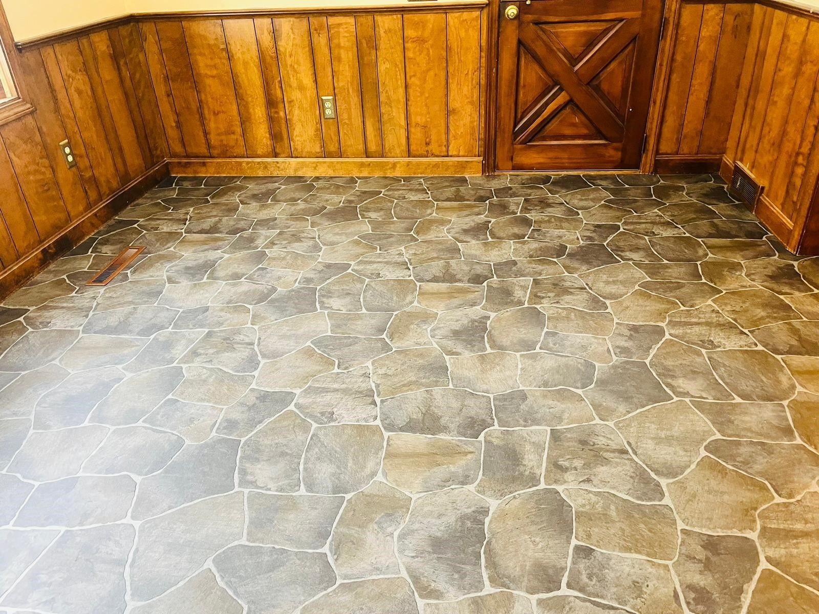 Consider new tile floors for your flooring solutions. Our tile options are a great investment. They're durable, easy to clean and safe near heated cooking systems.